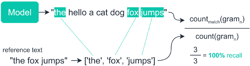 - Precision : LCS 길이 / output의 N-gram의수