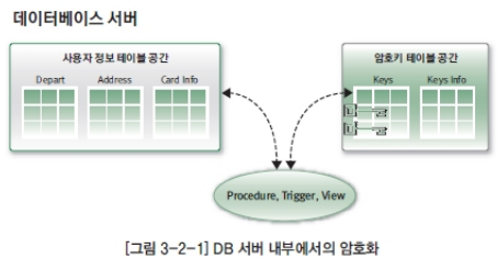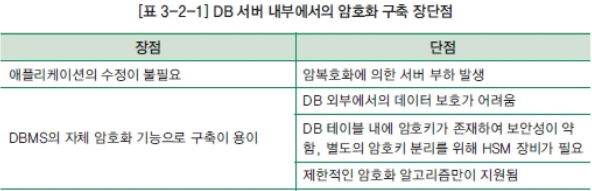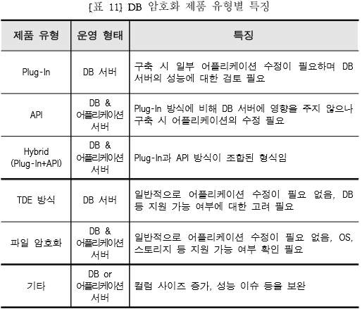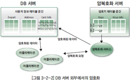 1)API방식:데이터베이스 솔루션 외부의 어플리케이션에서 데이터의 암/복화화를 수행,