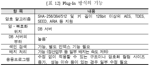 2)Plug-in방식:데이터베이스 서버에 제품을 설치->암/복호화 수행,