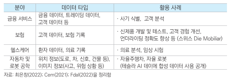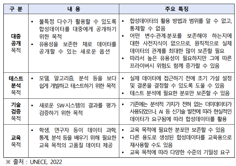 ※ 개인정보 보호 등의 사유로 실제 데이터의 활용이 어렵거나, 활용할 수 있는 데이터의 양이 부족한 경우에 주로 활용되며, 실제 데이터와 유사할수록 활용 가치가 높음