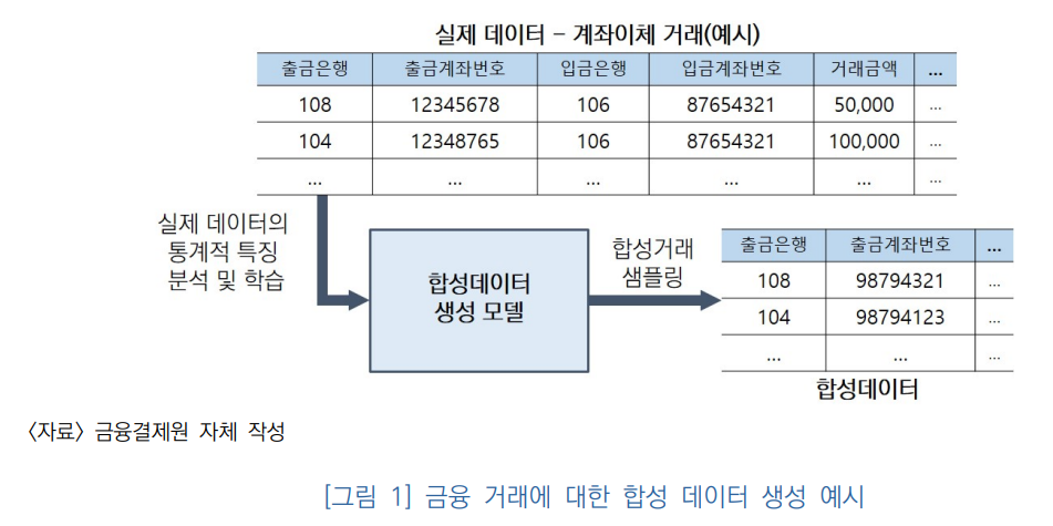 1) (안전성) 민감한 정보가 포함되어 데이터 활용에 우려가 있는 경우, 실제 데이터가 포함되지 않는 합성데이터를 생성하여 안전하게 활용가능