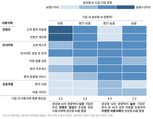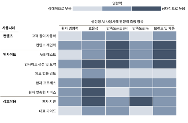 - ○생성형 AI에 대한 전략과 전용 예산을 갖춘 기업은 기업 규모에 관계 없이 매출 증가, 의료인력 및 환자 인식 개선, 효율성 향상과 같은 비즈니스에 실질적인 영향을 미칠 가능성이 2배 증가