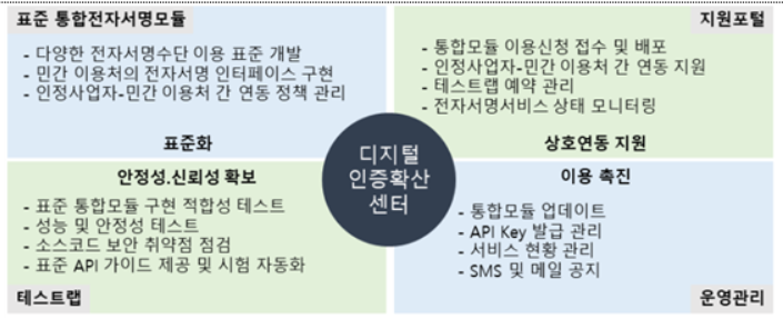 (개념) 서로 다른 종류의 인증서가 상호연동을 할 수 있도록 표준을 개발하며, 표준이 적용된 통합모듈 소프트웨어 제작 도구(SDK)를 배포할 예정