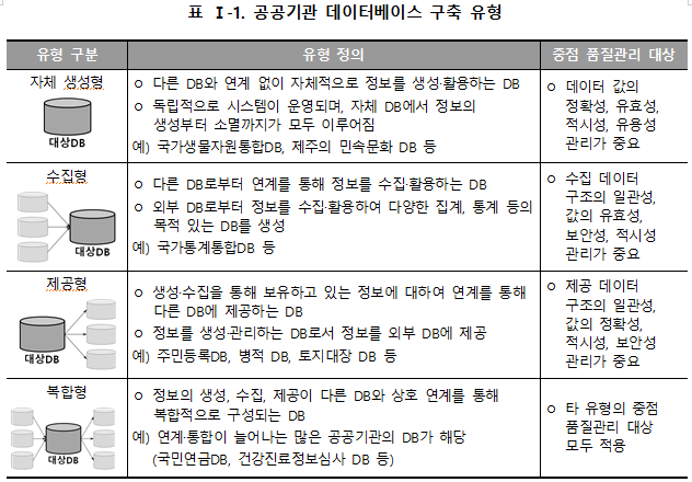 데이터 유형 분류 및 품질관리 대상