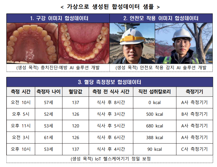 - 보건의료·공공안전·유통·금융 등 분야별 5종(비정형 2종, 정형 3종)의 합성데이터를 생성하고 생성과정을 모두 공개