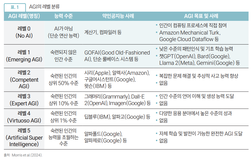 기본적인 이해 능력, 추론, 문제 해결, 창의적 사고 등을 갖춘 인간과 유사한 또는 높은 지능 수준을 가진 인공지능을 의미(성인 수준)