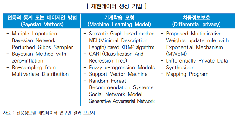 출처: 진짜 같은 가짜 ! 재현데이터의 개념 및 활용 사례 (이재근 팀장 (jglee@kcredit.or.kr))