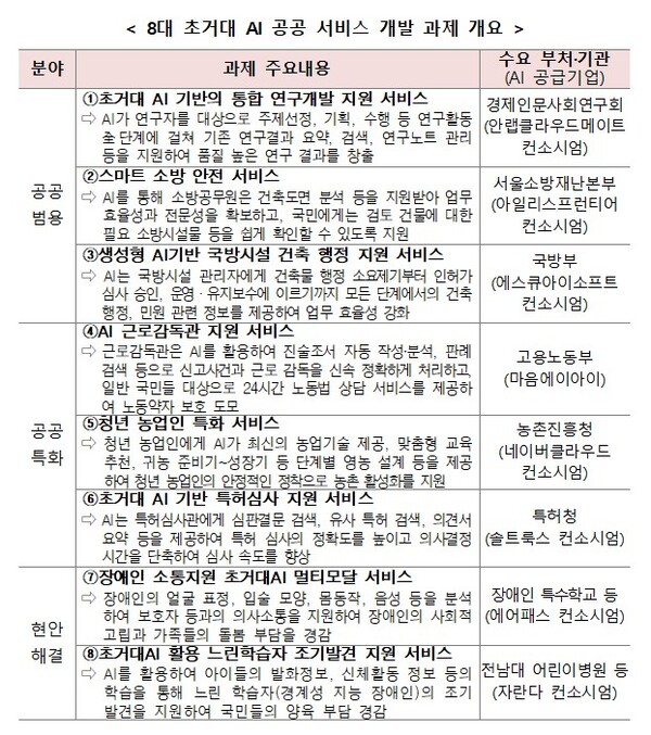 < 8대 초거대 인공지능 공공 서비스 개발 과제 개요 >
