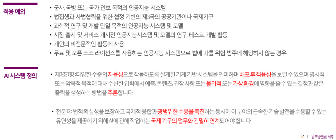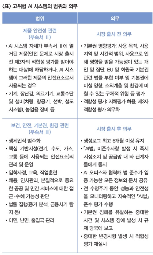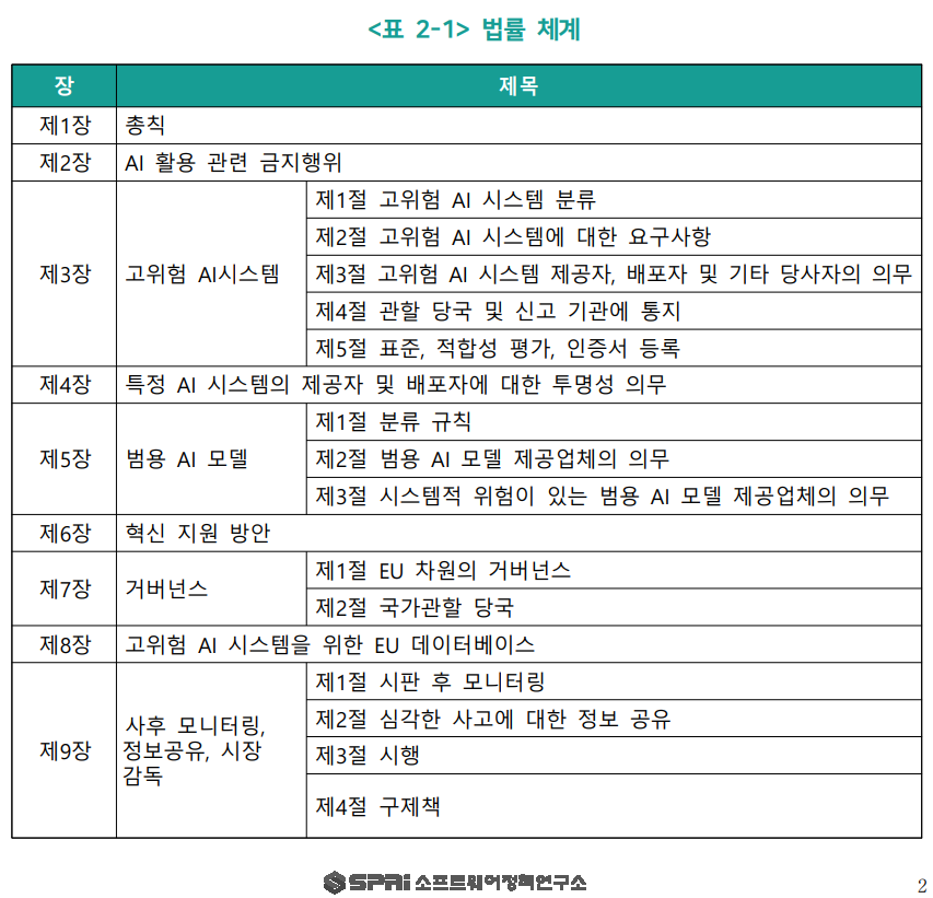 * AI 시스템의 정의, AI 규제, AI 시스템의 고위험 분류 및 요구사항, 범용 AI 시스템 등의 내용 포함