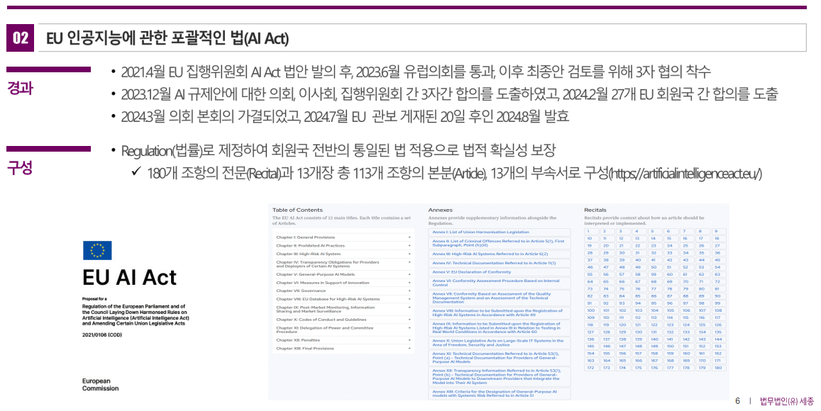 - (’24년 5월) 유럽연합 이사회에서 인공지능법안 공식 채택