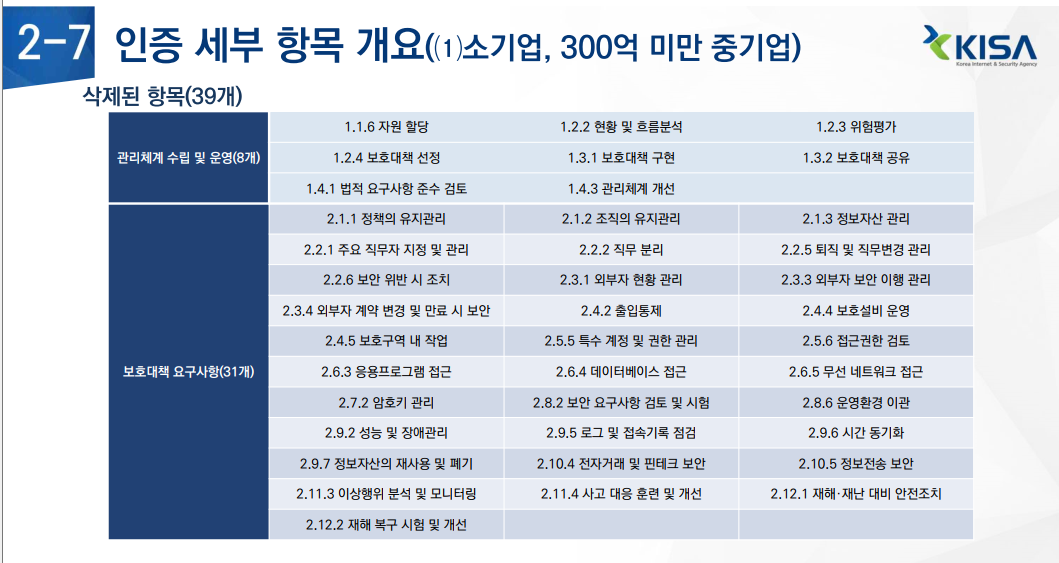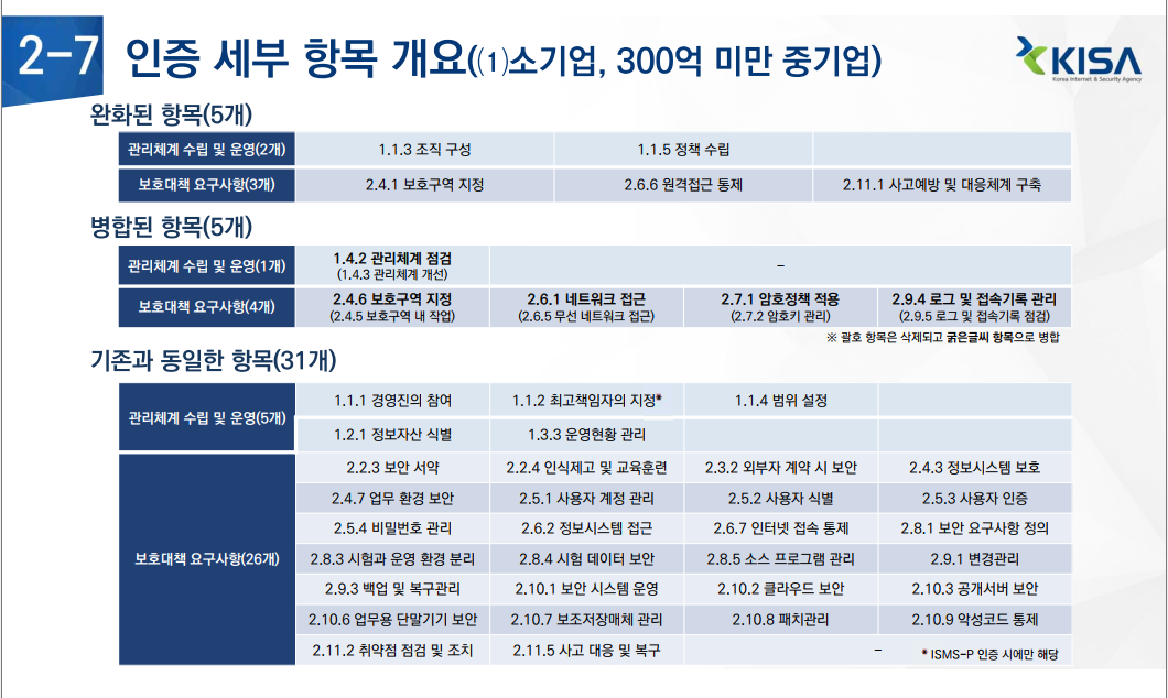 △ISMS: 80개 → 40개 또는 44개 / ISMS-P: 101개 → 62개 또는 65개
