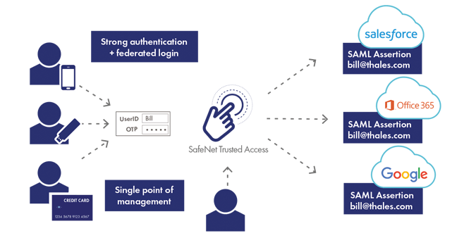 - 최종 사용자는 중앙 집중식 시스템에 먼저 인증한 다음 원하는 소프트웨어 애플리케이션에 액세스함