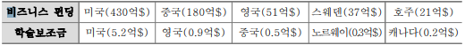 ㅇ (관련산업) 인터넷(51억$), 소프트웨어(17억$), 전자제품(15억$) 등