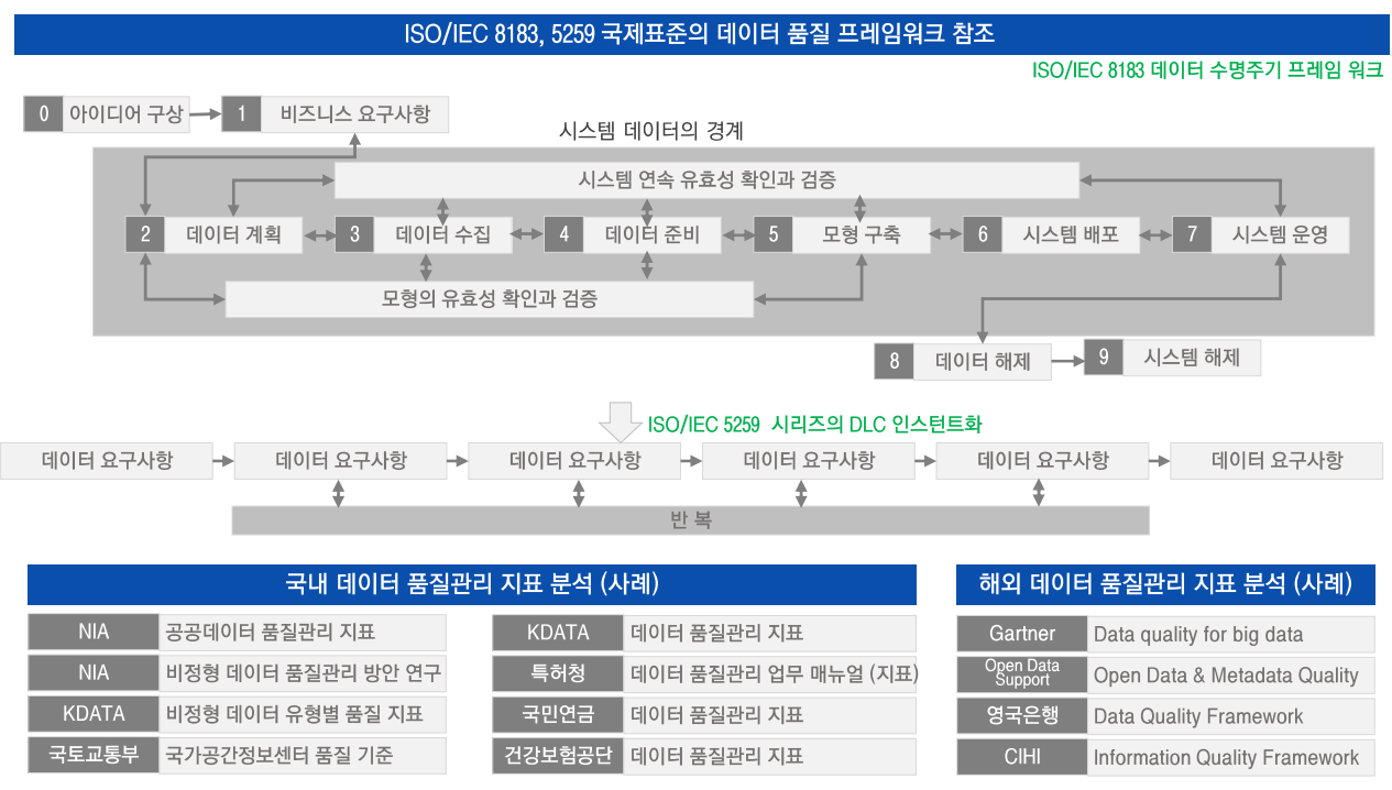 데이터 품질 : 데이터의 최신성, 정확성, 상호연계성 등을 확보하여 이를 사용자에게 유용한 가치를 줄 수 있는 수준