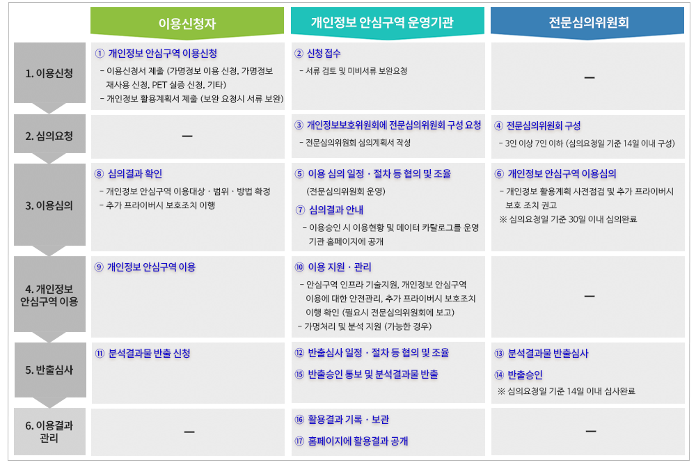 ** 4인 이상의 담당조직, 오프라인 폐쇄망 분석환경, 멀티팩터 인증, 데이터 외부반출 금지