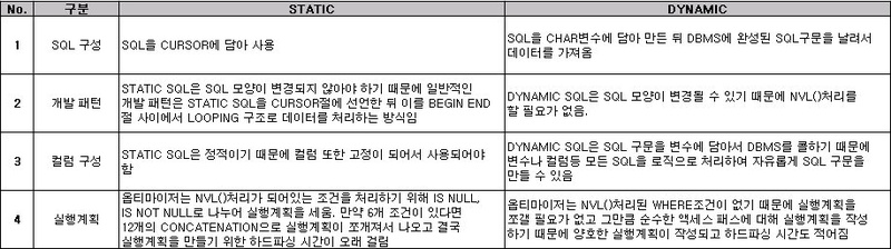 [STATIC SQL, DYNAMIC SQL 처리방식 비교]