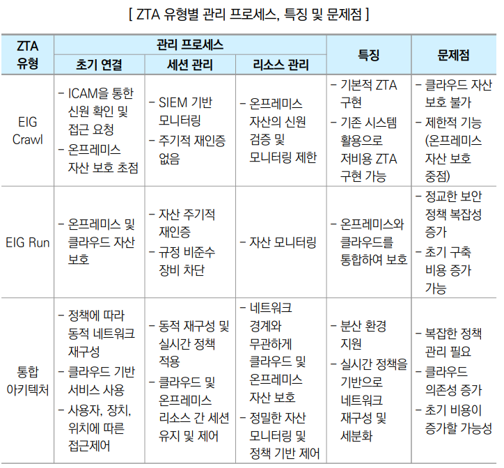 ** 지원 컴포넌트 : ID관리(ICAM : Identity, Credential, and Access Management) 시스템, 엔드포인트 보안, 보안 분석, 데이터 보안 등