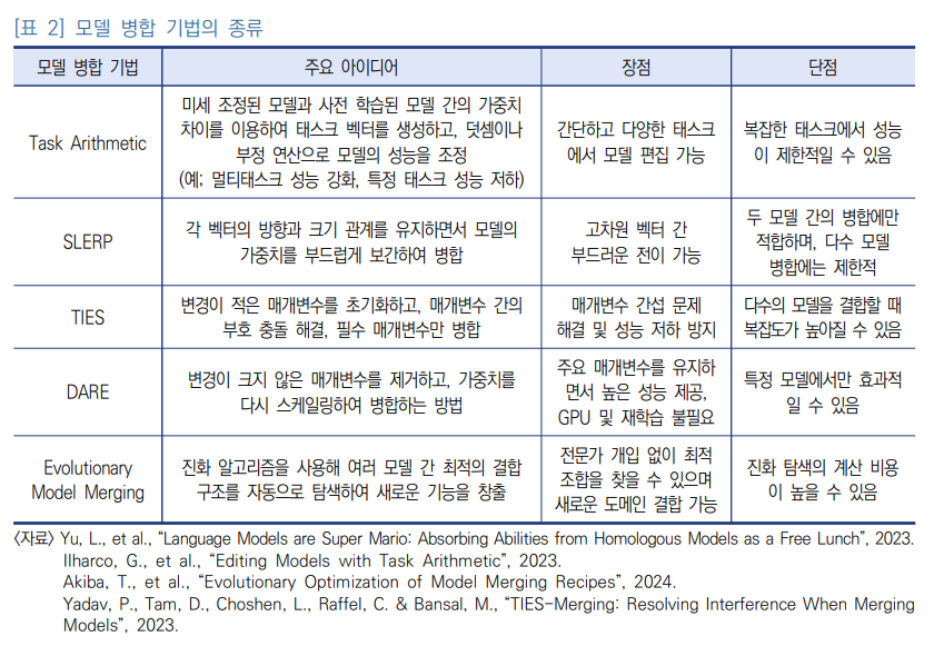 3. 모델 병합 및 결합 기법의 특징 및 효과