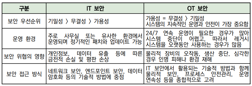 | 배경 | OT와 IT 융합 증가로 인해 발생하는 보안 위협과 취약점 대응 필요성 증대 |