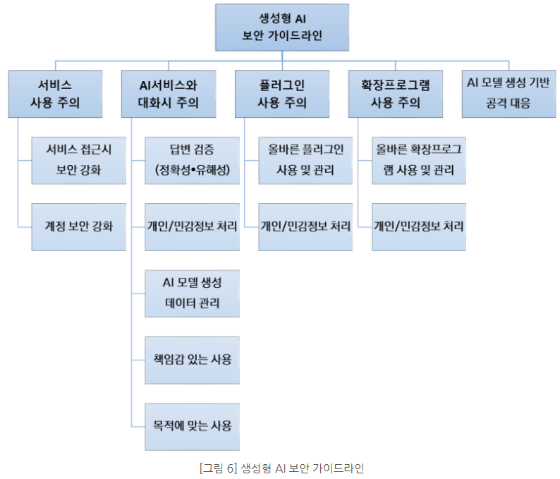 | 교육 및 인식 제고 | - 개발자, 사용자, 정책 입안자를 대상으로 AI 보안 위협 및 윤리적 활용 방법에 대한 교육 강화. |