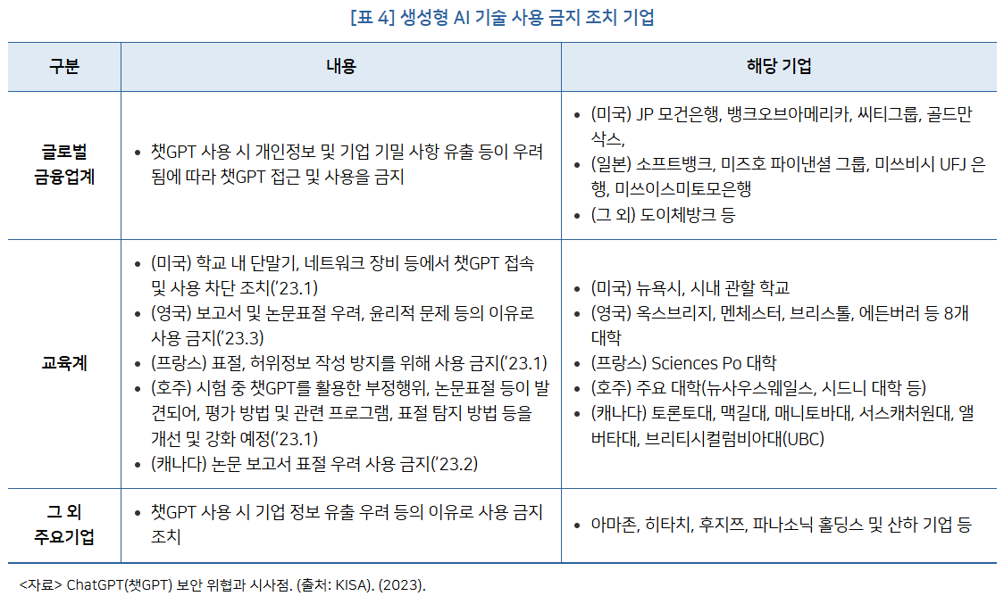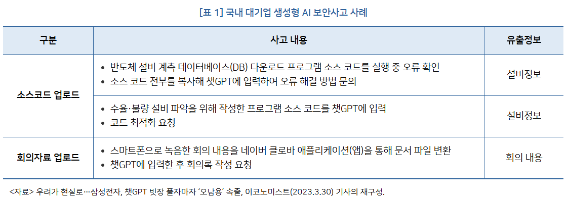 - 삼성전자: AI 활용 중 내부 데이터 유출 사례 발생.
