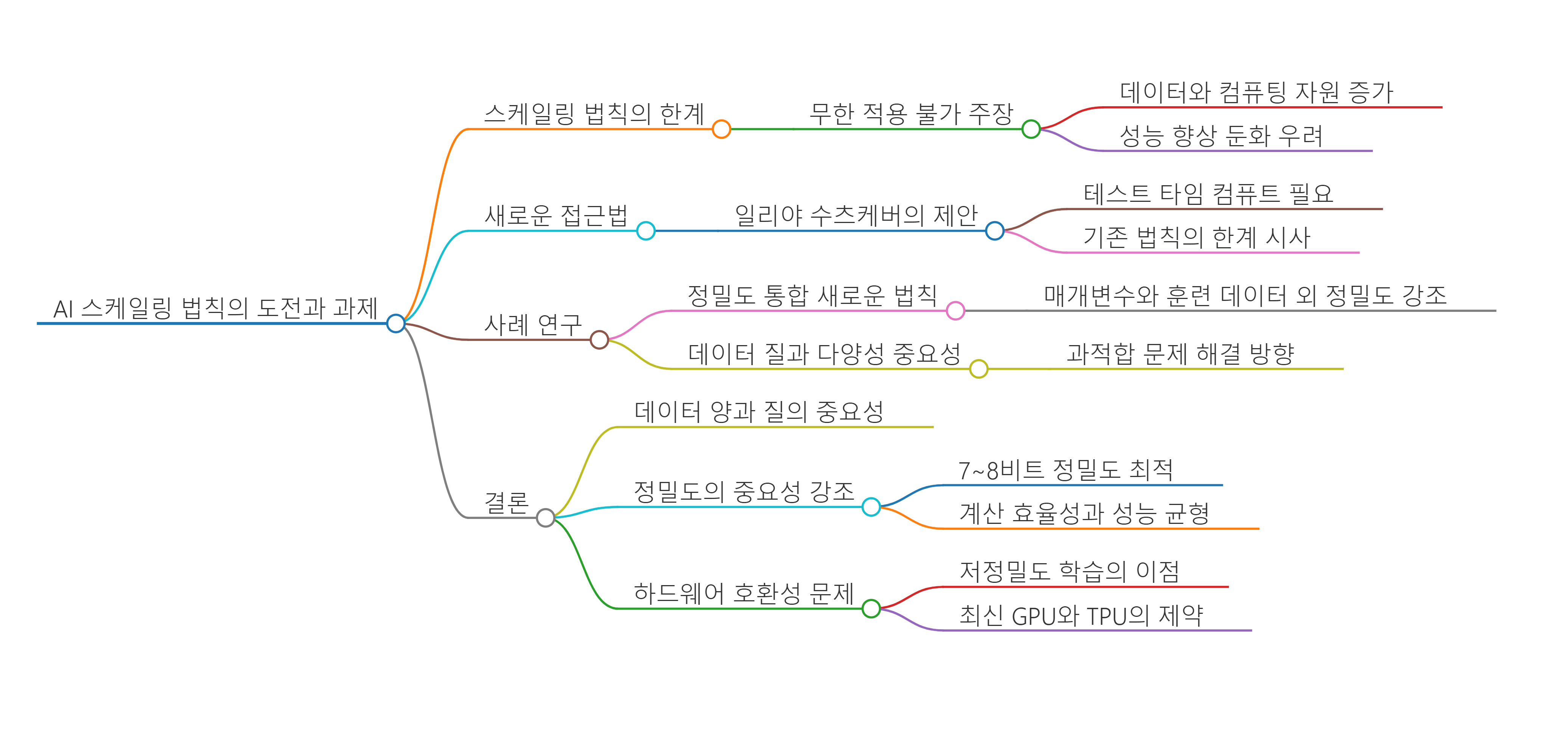 | 성능 향상의 둔화 | 데이터와 컴퓨팅 자원을 늘리는 것이 항상 성능 향상으로 이어지지 않음. 성능 개선이 일정 수준에서 둔화됨. |