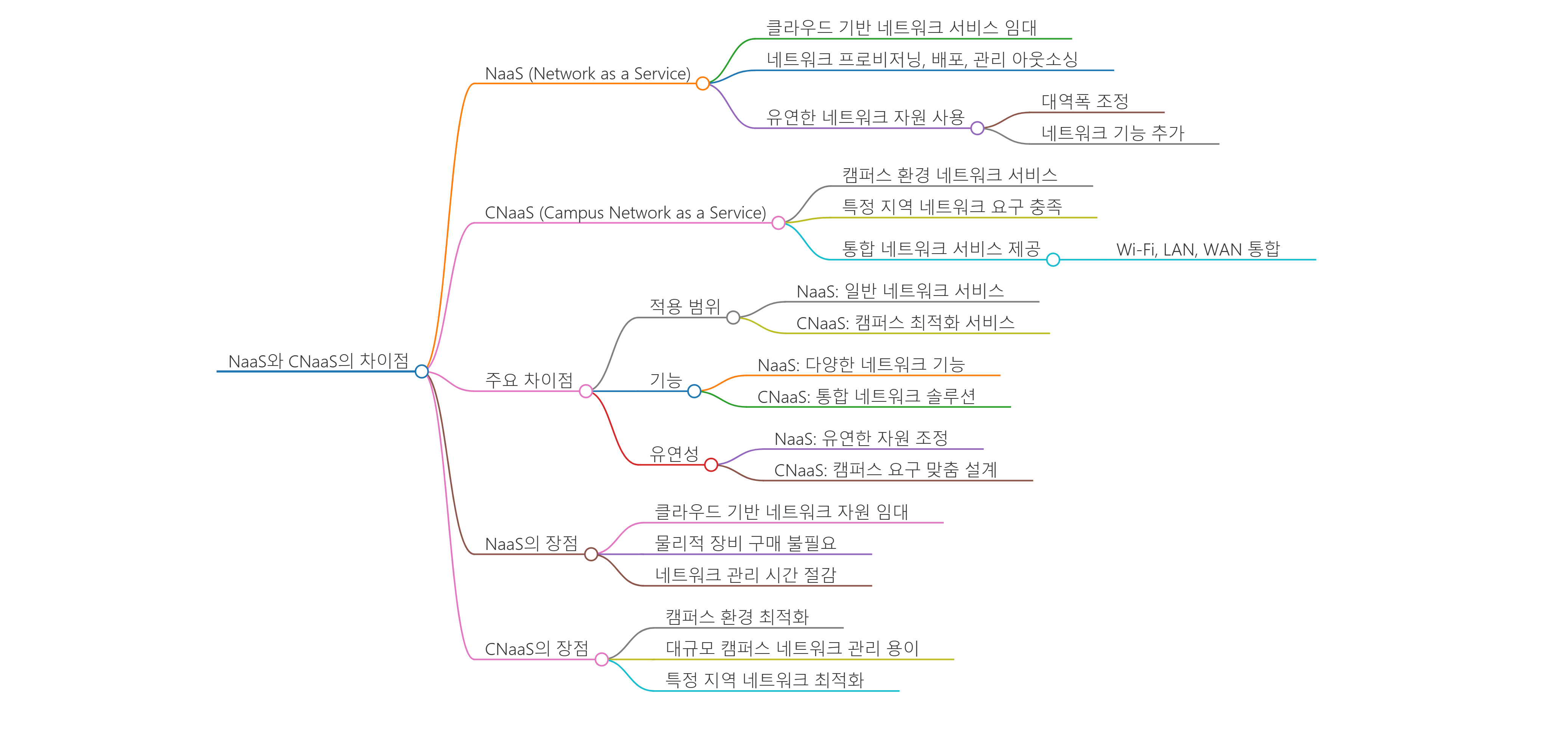 - NaaS의 하위 개념으로, 특정 지역, 예를 들어 대학 캠퍼스나 기업 캠퍼스 내에서의 네트워크 요구를 충족하기 위해 설계되었습니다. 이 모델은 Wi-Fi, LAN, WAN 등 다양한 네트워크 서비스를 통합하여 제공하며, 캠퍼스 내의 모든 네트워크 요구를 관리하는 데 중점을 둡니다.