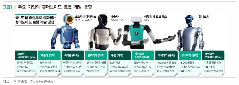 - 생성형 AI에서 촉발된 기술 경쟁이 AI 탑재 휴머노이드로 이어질 가능성 큼.