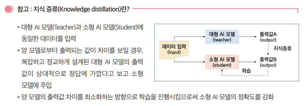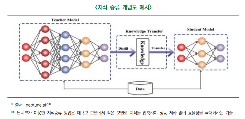 - 증류는 한 교사(teacher) 모델이 학생 모델에 대한 학습 데이터를 생성하는 것으로 일반적으로 교사가 학생보다 더 큰 모델이라고 가정함