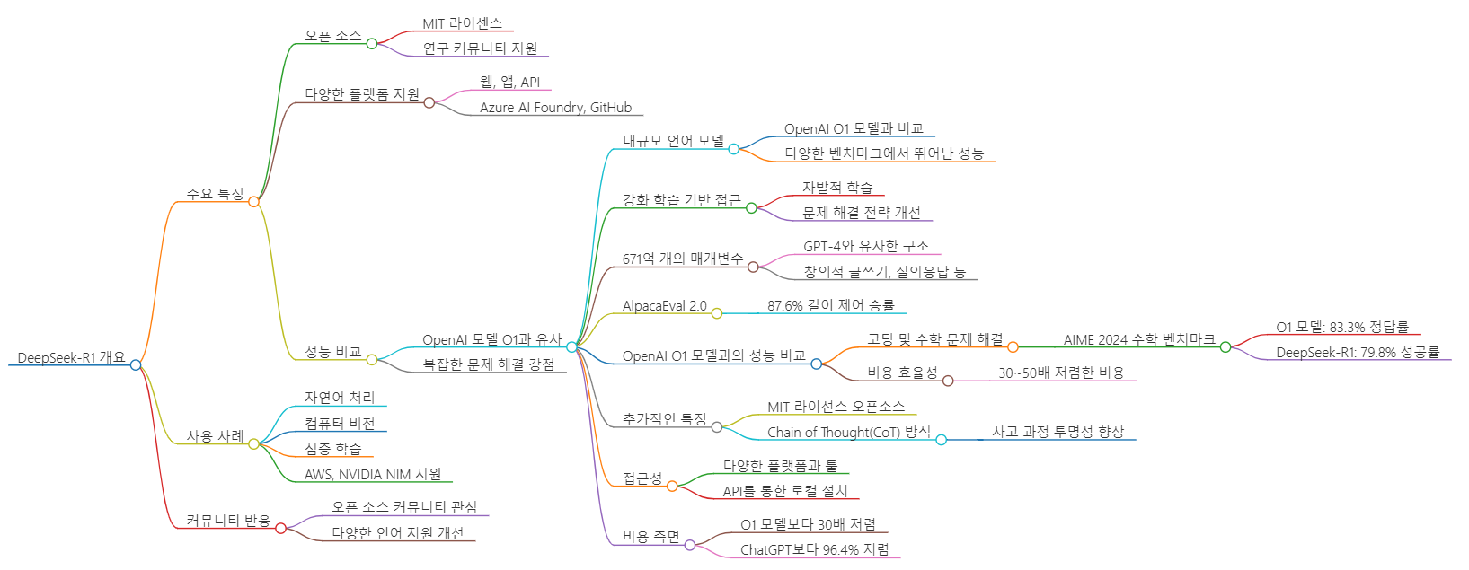 - 성능 비교: DeepSeek-R1은 OpenAI의 모델 O1과 유사한 성능을 보이며, 특히 신뢰할 수 있는 출처를 인용하여 복잡한 문제를 해결하는 데 강점을 보입니다