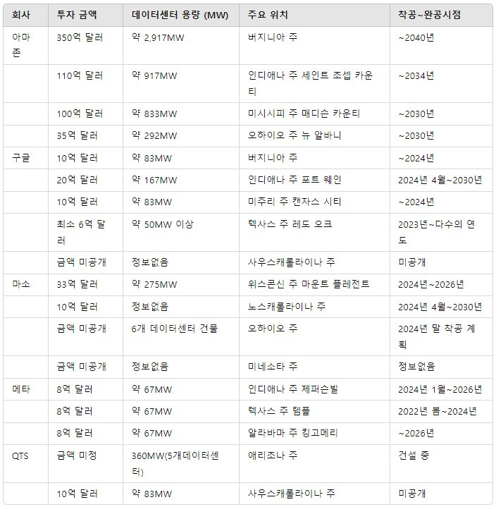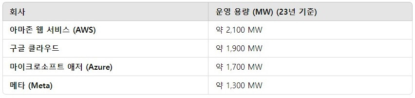 먼저, 23년까지 각 하이퍼스케일러들이 미국에 보유한 데이터센터 용량과,