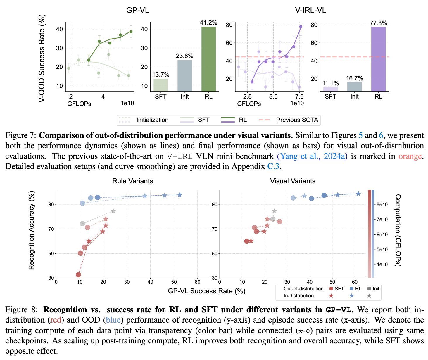 이 연구는 또한 Foundation Model이 사전 훈련된 모델의 구조를 어떻게 활용할 수 있는지를 분석하고, RL이 사용되는 다양한 시나리오에서 모델이 어떻게 효율적으로 일반화할 수 있는지를 제안합니다. SFT와 RL 간의 이러한 차이는 특히 AI 시스템이 다양한 환경에서 어떻게 성능을 발휘할 수 있는지에 대한 중요한 통찰을 제공합니다.