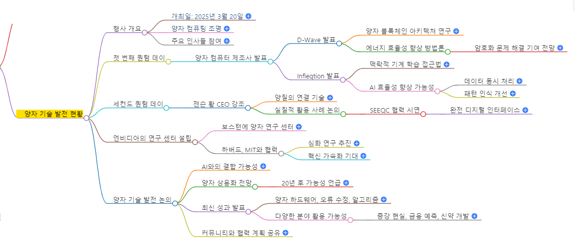 퀀텀 데이는 올해 GTC에서 처음으로 개최된 행사로, 양자 컴퓨팅의 응용 사례와 산업 내 현재의 위치에 대한 구체적인 논의가 포함되었습니다. 엔비디아는 파트너사인 아이온큐와 함께 양자 컴퓨팅을 활용하여 실제 산업 문제 해결을 위한 여러 연구 결과를 발표했습니다. 특히, 아이온큐는 약 36큐빗 규모의 양자컴퓨터를 상온에서 구동하는 기술을 강조하며, 기존 컴퓨터 환경 대비 최대 20배의 성능 향상 사례를 공유했습니다12.