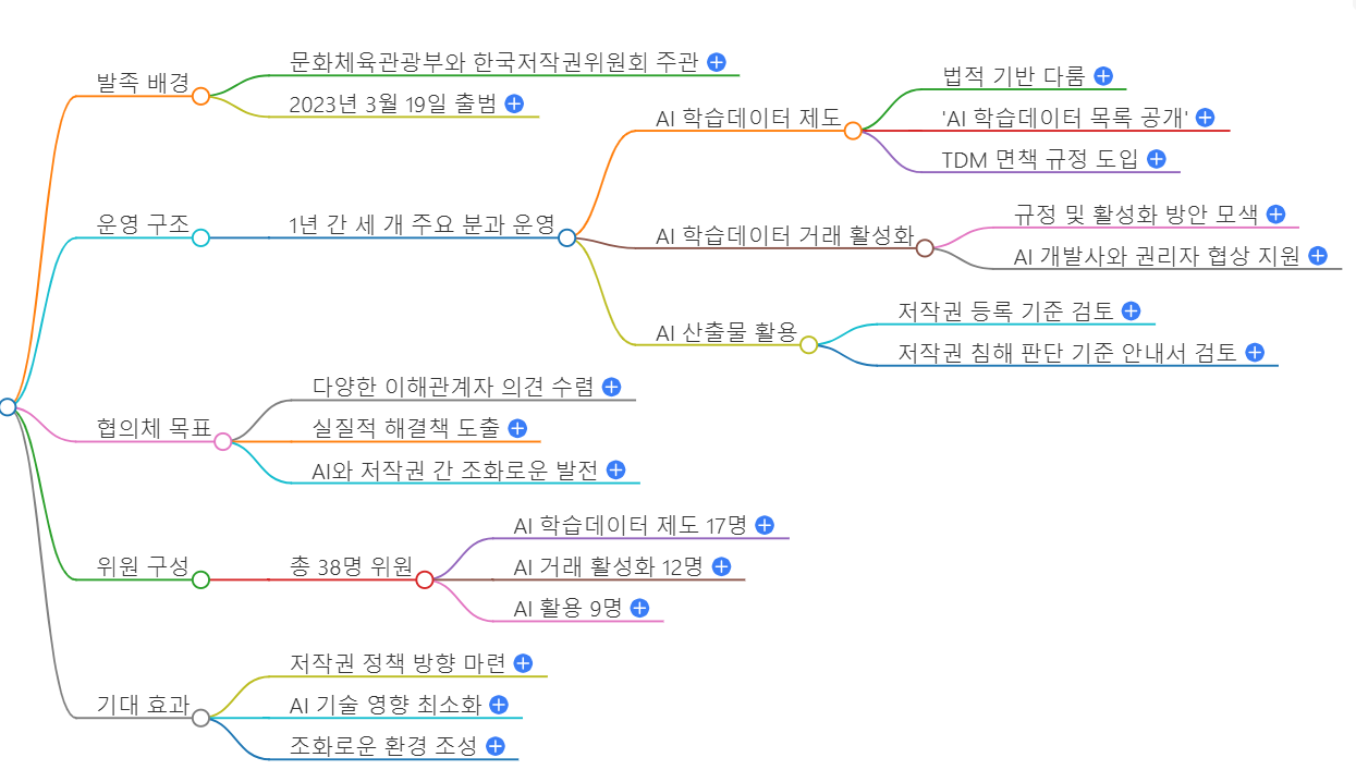 이번 발족은 AI 기술의 발전과 함께 저작권 제도의 개선이 필수적이라는 인식에 기초하여 진행된 것으로, 정부와 민간 부문이 함께 협력하여 다양한 과제를 해결해 나갈 계획입니다348.