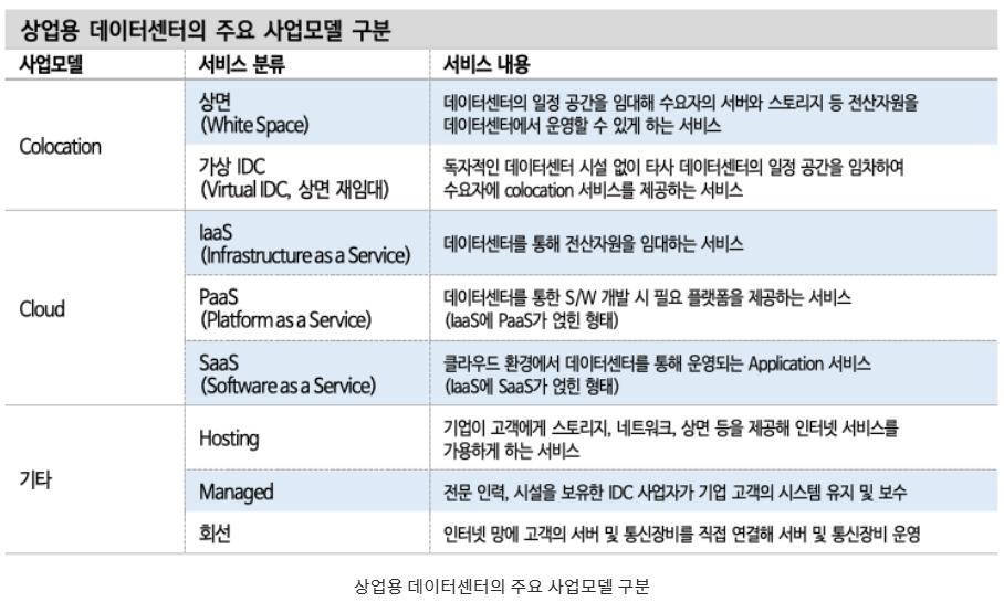 - 서버 호스팅: 서버를 임대하여 사용하며, IDC 사업자가 서버의 운영 및 관리를 대행