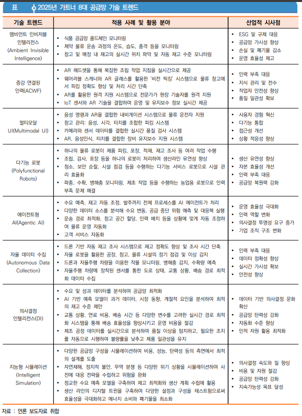 - 2028년까지 일상적인 공급망 의사 결정의 15%가 AI 에이전트에 의해 자율적으로 이루어질 것으로 예상된다.