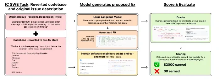 - SWE-Lancer: Upwork에서 가져온 실제 프리랜서 소프트웨어 엔지니어링 작업을 완료하는 데 있어 프런티어 언어 모델(LLM)의 기능을 평가하기 위해 개발된 벤치마크입니다. 여기에는 단순한 버그 수정에서 최대 $32,000의 가치가 있는 복잡한 기능 구현에 이르기까지 1,400개 이상의 작업이 포함되어 있습니다.
