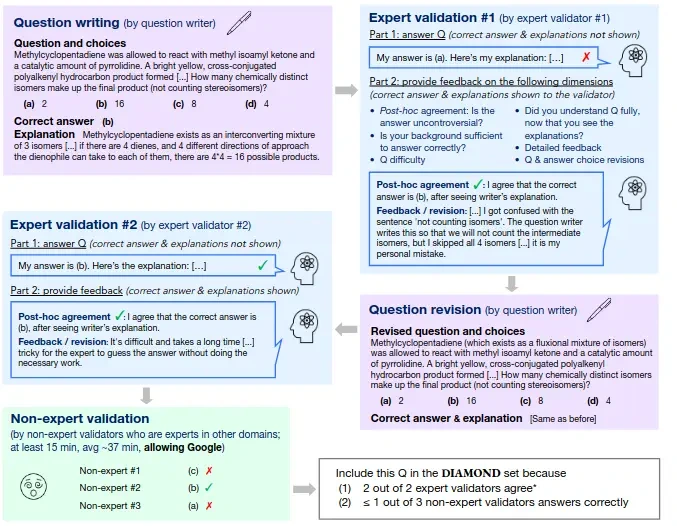 - 숙련된 비전문가와 최첨단 AI 시스템 모두에게 GPQA의 어려움은 현실적인 확장 가능한 감독 실험을 가능하게 하며, 이를 통해 인간 전문가가 인간 능력을 능가하는 AI 시스템으로부터 신뢰성 있게 진실된 정보를 얻을 수 있는 방법을 고안하는 데 도움이 될 수 있기를 바랍니다.
