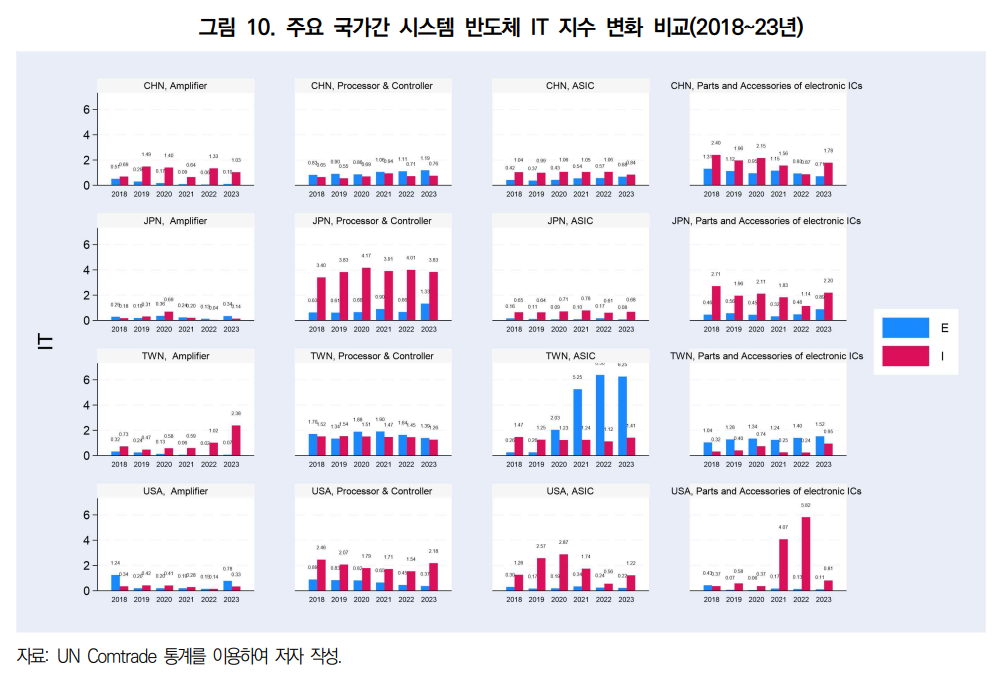 이를 보완하기 위해서 지수값이 –1에서 1사이의 값을 가질 수 있도록 보정한 RSCA(Revealed Symmetric Comparative Advantage Index) 지수를 이용하여 분석함