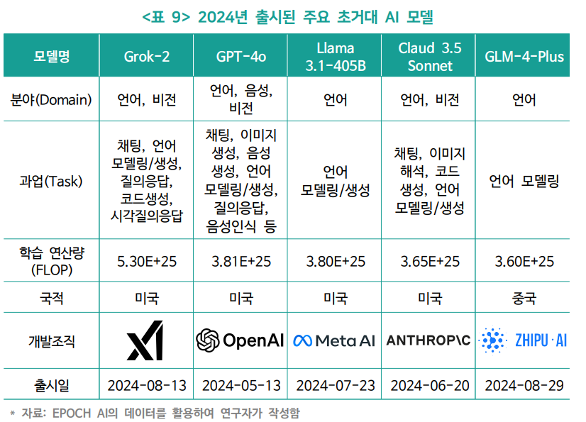 美 민간 연구단체인 ‘EPOCH AI’에서 운영 중인 초거대 AI 모델(Large-Scale AI Model) 데이터베이스(DB)에 수록된 정보를 집계하고 분석함