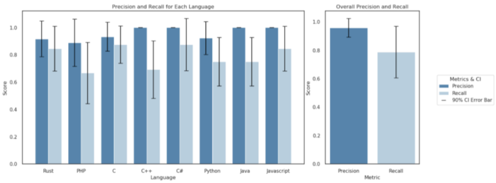 성능 지표: 내부 배포 경험에 따르면, 일반적인 종단 간 지연 시간은 70밀리초 미만입니다. CyberSecEval3 평가에서 CodeShield는 불안정한 코드 식별에 96%의 정밀도와 79%의 재현율을 달성하여 정적 탐지 시나리오에서 높은 정확도를 보여주었습니다.