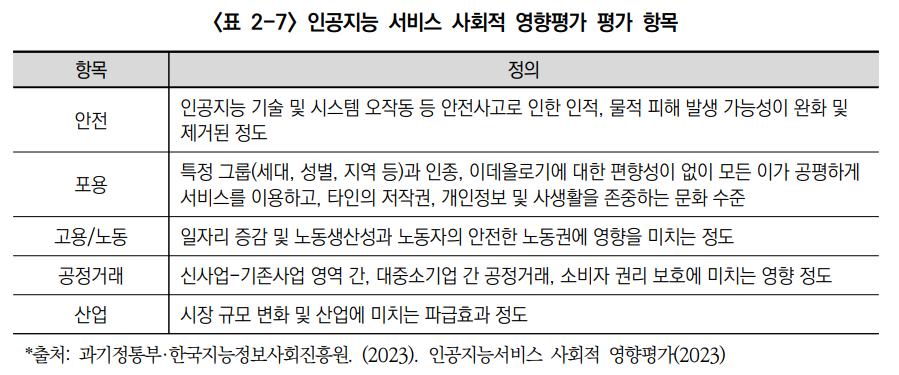 〈표 2-7〉 인공지능 서비스 사회적 영향평가 평가 항목 35