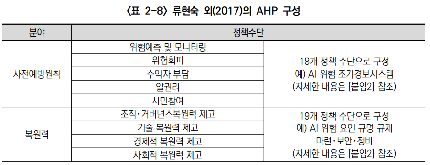 〈표 2-8〉 류현숙 외(2017)의 AHP 구성 36