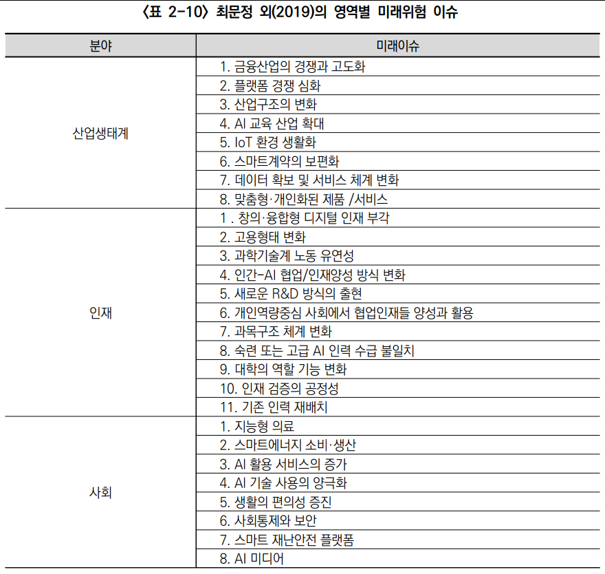 〈표 2-10〉 최문정 외(2019)의 영역별 미래위험 이슈 37