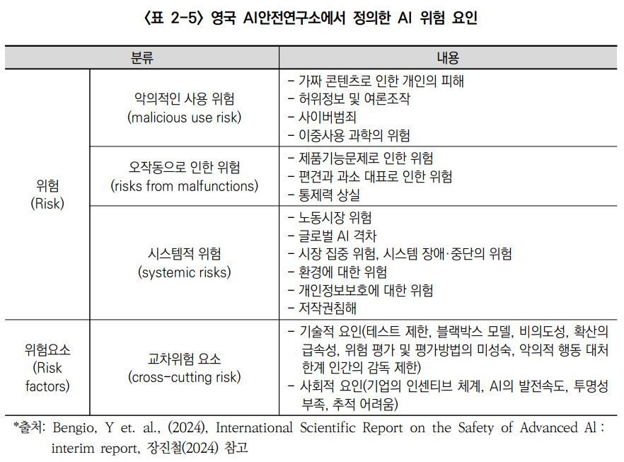 〈표 2-5〉 영국 AI안전연구소에서 정의한 AI 위험 요인 33