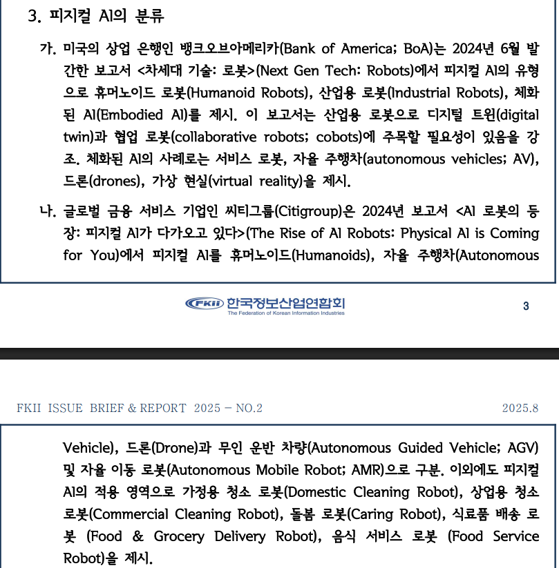 o 보고서명 : [FKII ISSUE BRIEF&REPORT 2025-No.2] '피지컬 AI' 시대: 한국형 피지컬 AI 생태계 조성 방안