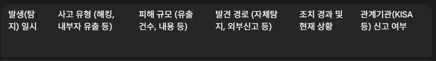 - 요구 취지: 실제 침해사고 발생 시 이를 탐지하고, 대응하며, 재발을 방지하는 프로세스가 제대로 갖추어져 있는지 확인함과 동시에, 실제 발생했으나 외부에 공개되지 않은 사고까지 파악하고자 함.
