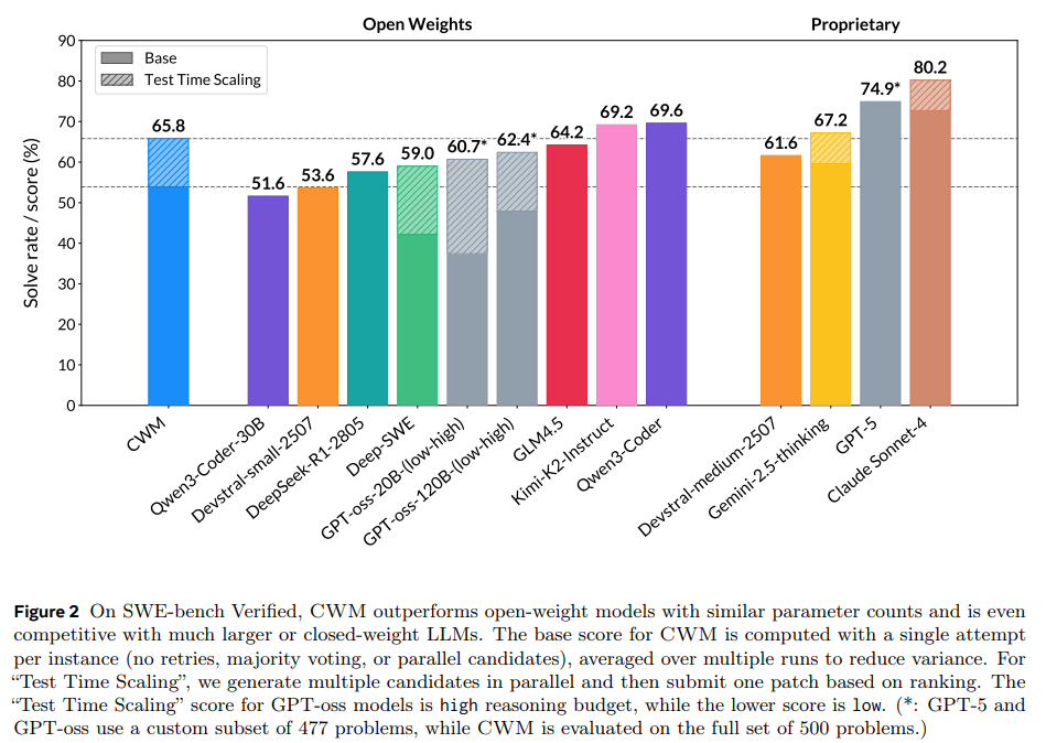 - SWE-bench Verified, LiveCodeBench 등 일반 코딩 및 수학 과제에서 동급 오픈 모델을 능가하고 대규모 모델과도 경쟁하는 강력한 성능을 보이며, 코드 세계 모델링 연구를 위한 테스트베드를 제공