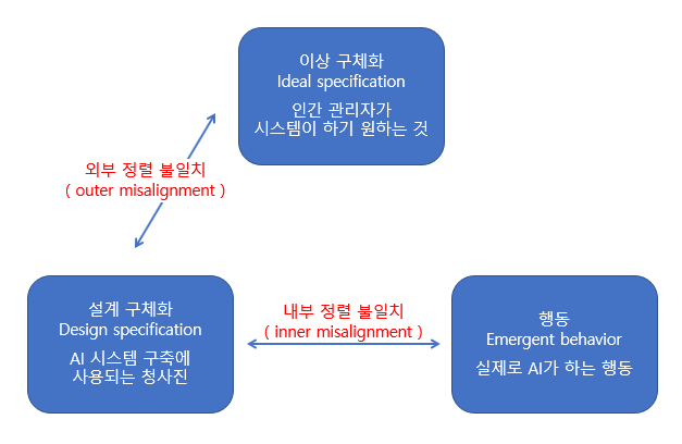 - 넓은 의미의 정렬(ambitious alignment): 초지능 수준의 AI가 스스로 의사결정을 내리는 상황에서도 인류 전체의 복지와 가치와 일치하게 작동하도록 하는 연구로, 윤리학과 철학 영역까지 확장된다. 스튜어트 러셀은 “AI 시스템은 인간 선호의 최대 실현을 목표로 설계되어야 한다”고 강조했다.