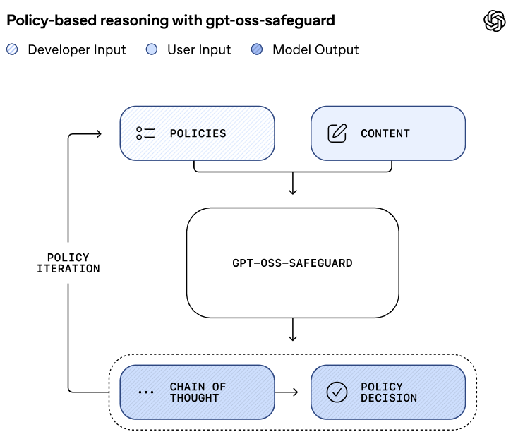- 개발자가 직접 제공한 정책(policy) 을 모델이 추론(체인-오브-토트 포함)으로 해석해 메시지/완성/대화를 분류하도록 설계되어 있고, 정책을 바꿔서 내 재량의 기준으로 분류를 수행 가능